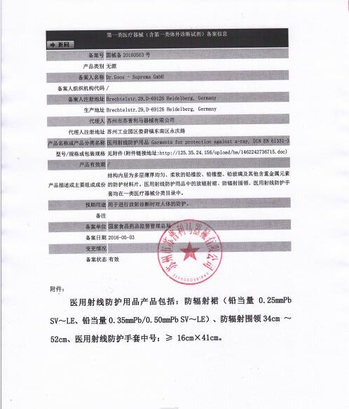 蘇州市蘇普利馬器械有限公司是專業(yè)從事醫(yī)用X射線防護系列用品、裝置、代理德國Dr.Goos-Suprema Gmbh.顧斯博士-蘇普利馬有限公司生產(chǎn)的原裝進口鉛衣及醫(yī)用觀片燈的生產(chǎn)銷售企業(yè).生產(chǎn)的X射線防護圍裙均來自美國SHIELDING公司的最新型超薄型防護材料,,具有防護性能可靠、穿戴舒適、輕便柔軟、操作自如等諸多優(yōu)點.產(chǎn)品均通過相關(guān)X射線檢測機構(gòu)的檢測,達(dá)到產(chǎn)品標(biāo)準(zhǔn)的要求.X射線醫(yī)用膠片觀察燈。是采用全LFD燈光技術(shù)。具有重量輕,光源均勻,亮度高,無頻閃,不變型,使用壽命長等特點。均取得了生產(chǎn)許可及醫(yī)查看更多>>